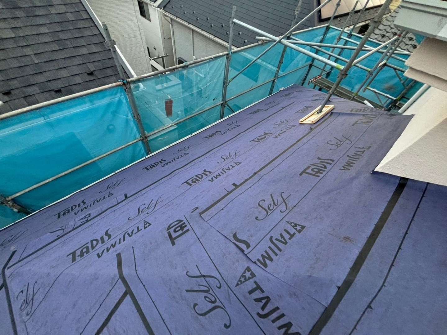 理由:この工程は、屋根の防水性能の心臓部です。既存の屋根や下地が濡れた状態で防水シートを敷くと、湿気が内部に閉じ込められ、結露や野地板の腐食といった深刻な問題を引き起こす原因となります。完全に乾燥した状態でなければ、絶対に作業は行いません。